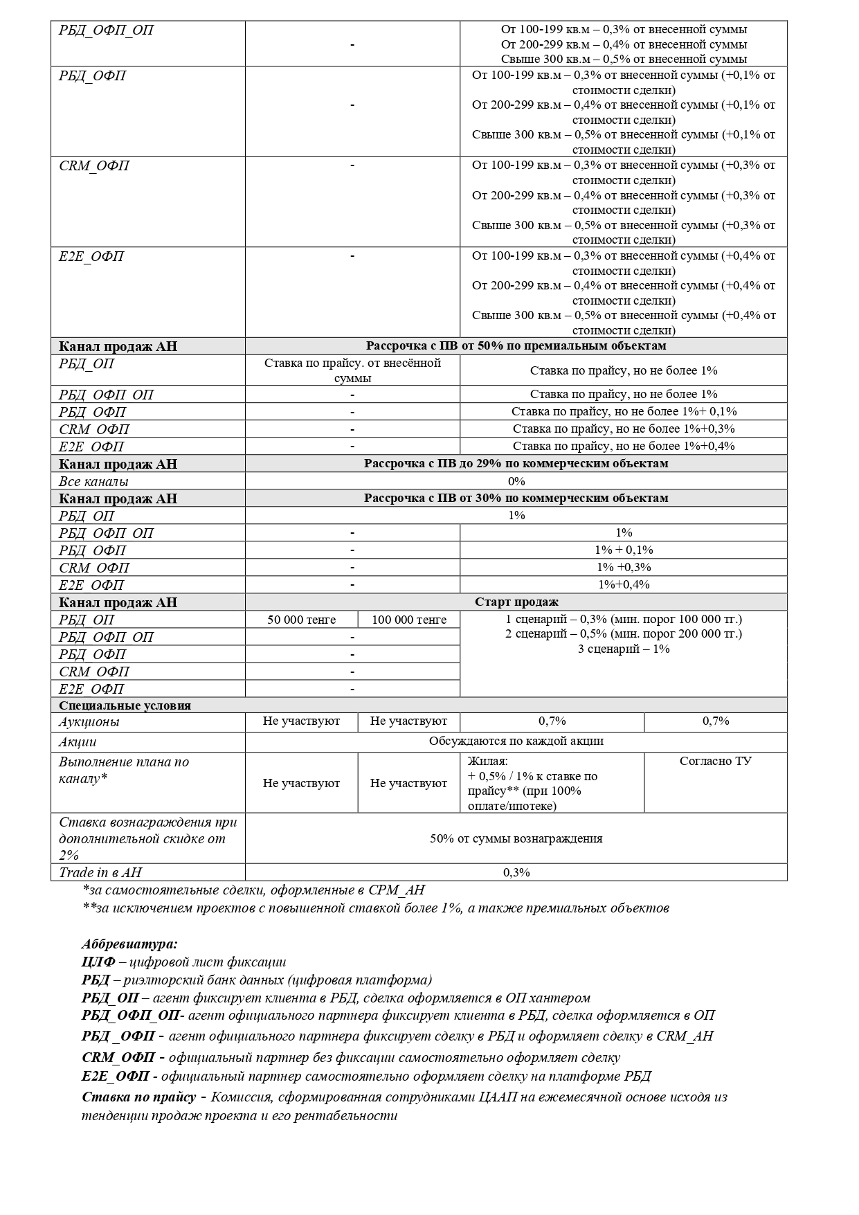 Размеры агентских комиссий по ЦЛФ