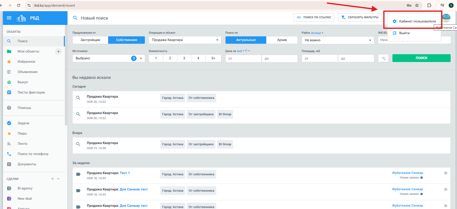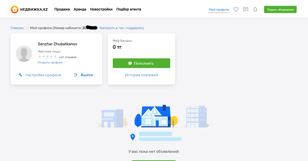 2.6 После отправки запроса перейдите на сайт Nedvizhka.kz в раздел «Мой профиль».
