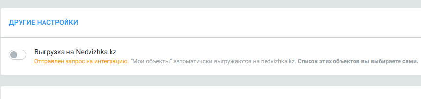 2.3 Внизу, в блоке «Другие настройки», найдите переключатель «Выгрузка на Nedvizhka.kz».