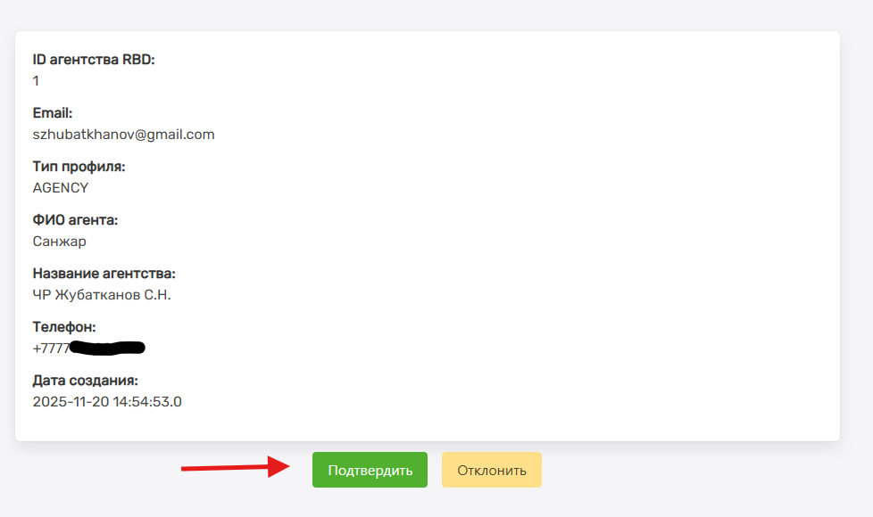 2.5 Система отправляет запрос на Nedvizhka.kz. После одобрения настройка автоматически сохраняется в профиле пользователя.