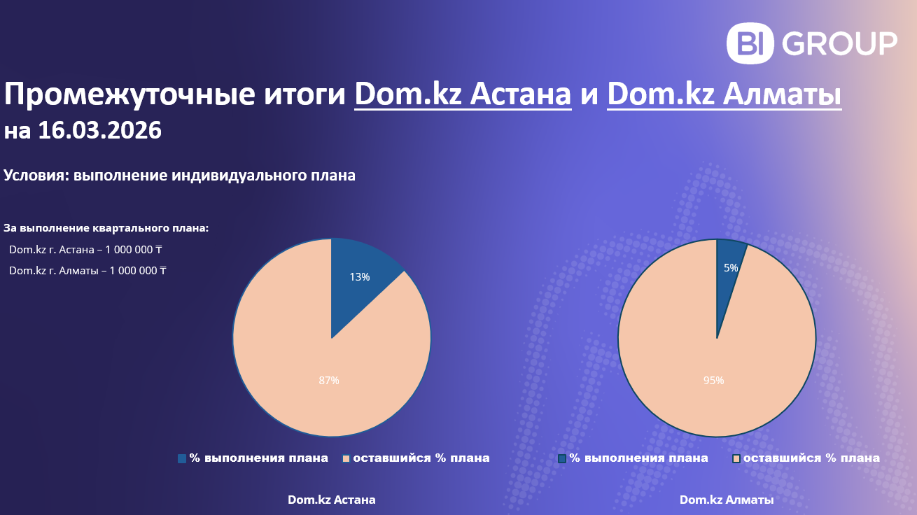 ▪ Dom.kz — выполнение установленного плана на квартал