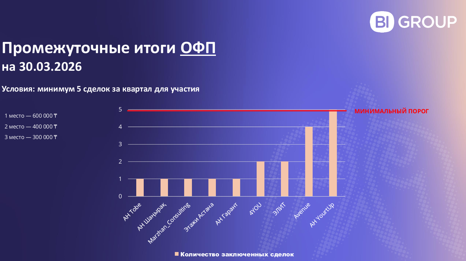 ▪ Официальные партнёры — минимум 5 сделок за квартал для участия